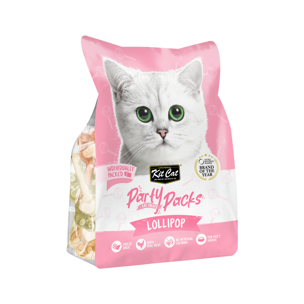 Kit Cat Party Packs is crafted with 100% real chicken breast, Kit Cat Party Packs is the perfect freeze-dried treat-wholesome, nutritious, and irresistible. Each portion is individually packed to lock in freshness and flavor, making treat time convenient and mess-free.
