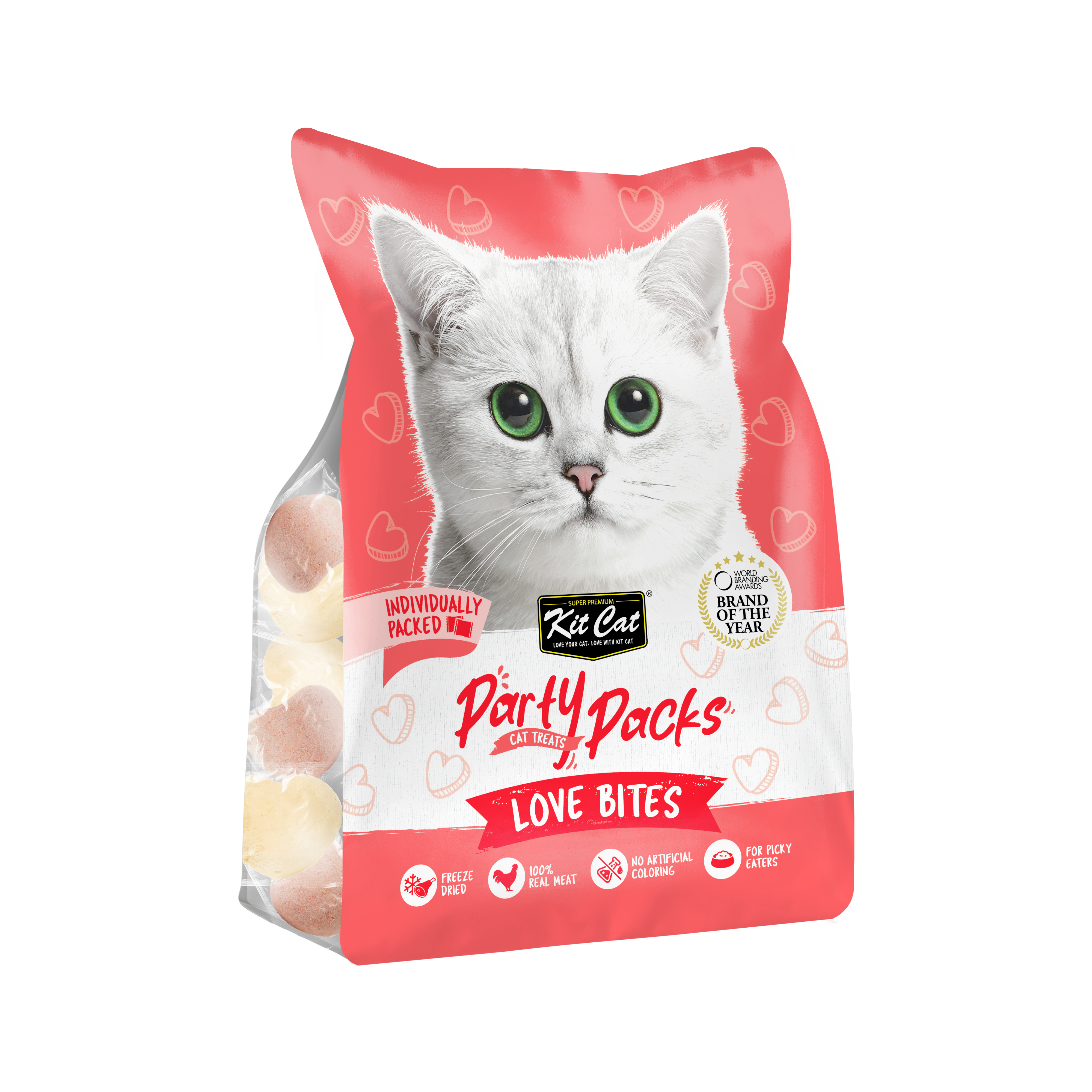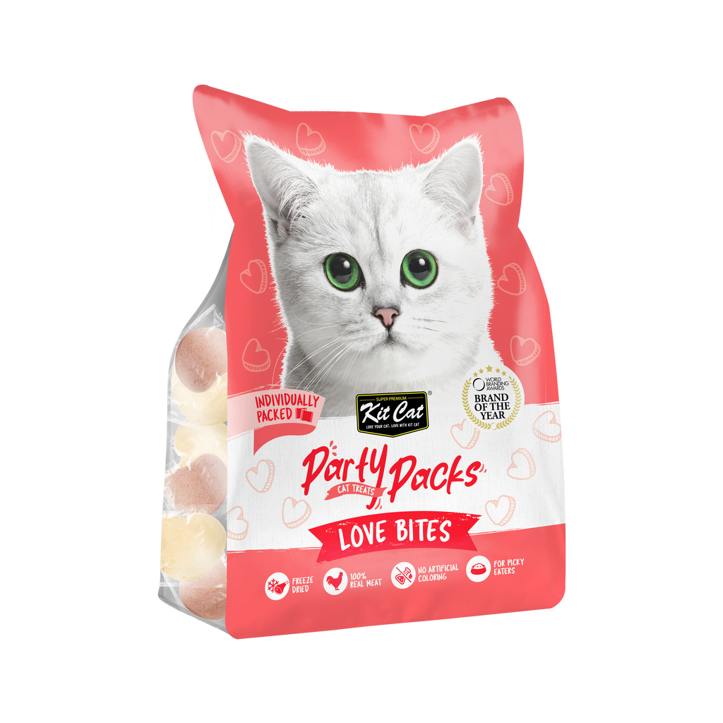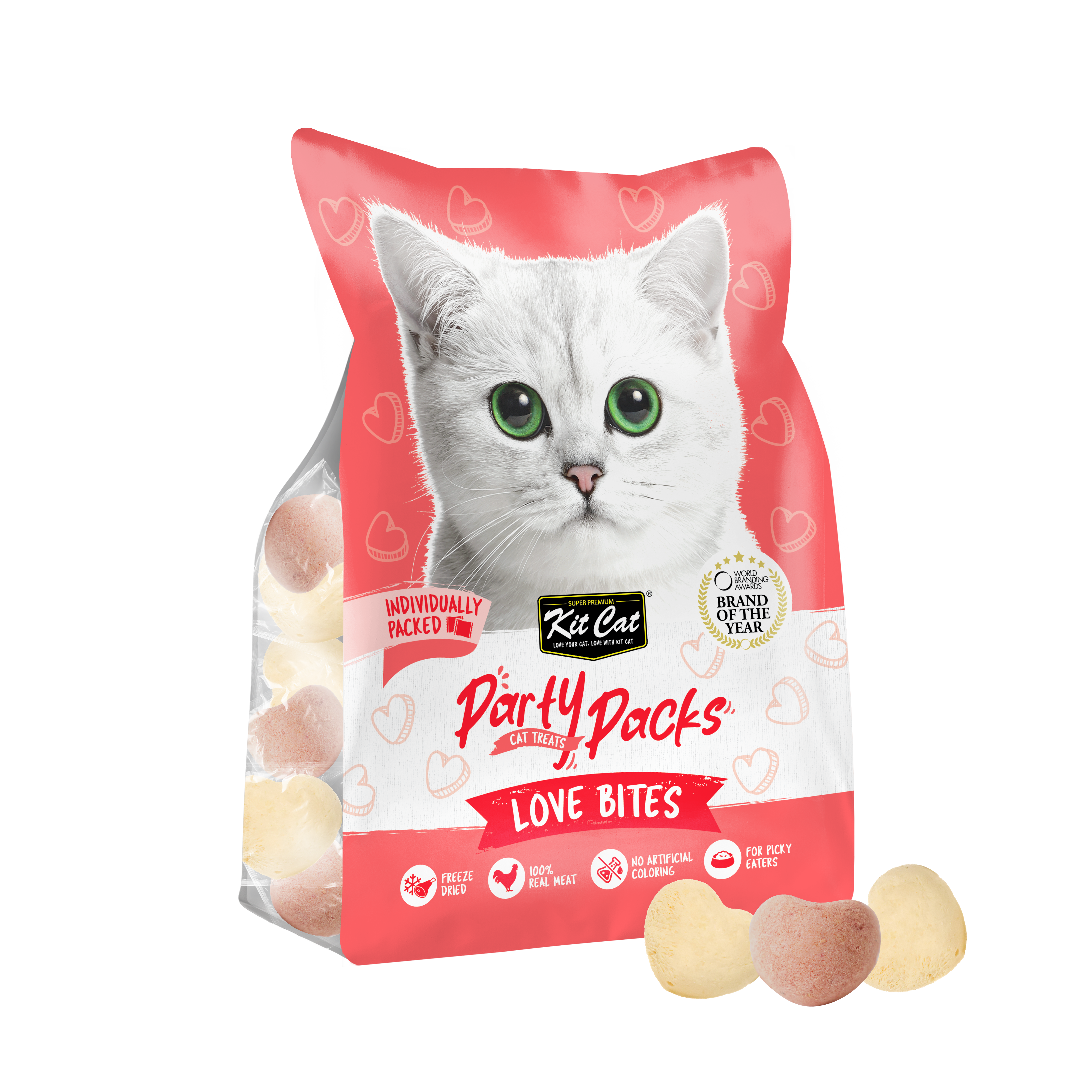 Kit Cat Party Packs is crafted with 100% real chicken breast, Kit Cat Party Packs is the perfect freeze-dried treat-wholesome, nutritious, and irresistible. Each portion is individually packed to lock in freshness and flavor, making treat time convenient and mess-free.
