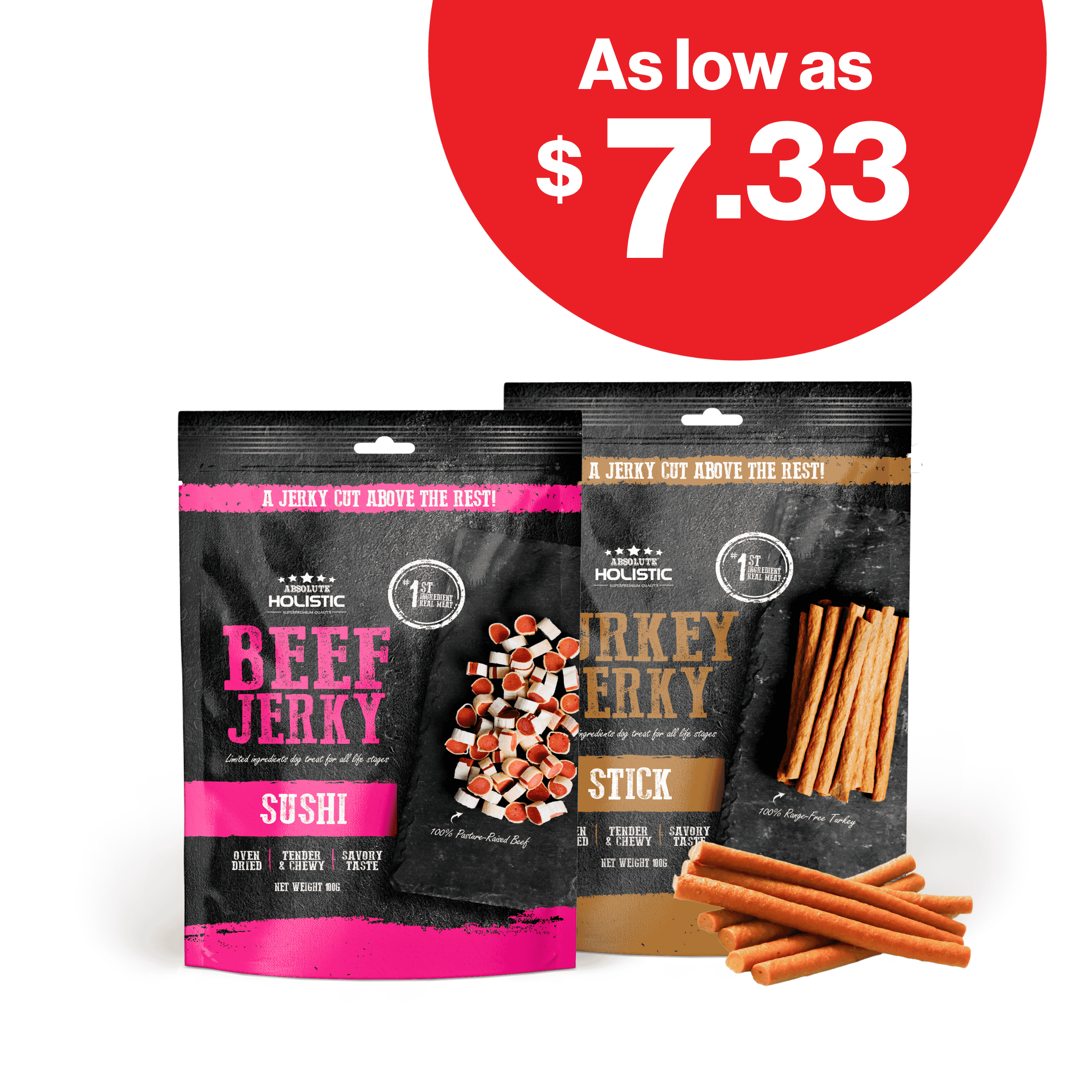 Absolute Holistic Jerky Dog Treat is a premium, high-quality snack that is made with carefully selected ingredients to ensure its superior taste and nutrition. This dog treat is oven-dried to perfection, resulting in a uniquely moist texture that is both tender and chewy. An authentic aroma that will entice your pet's senses, while the slightly savoury finish will leave them wanting more!