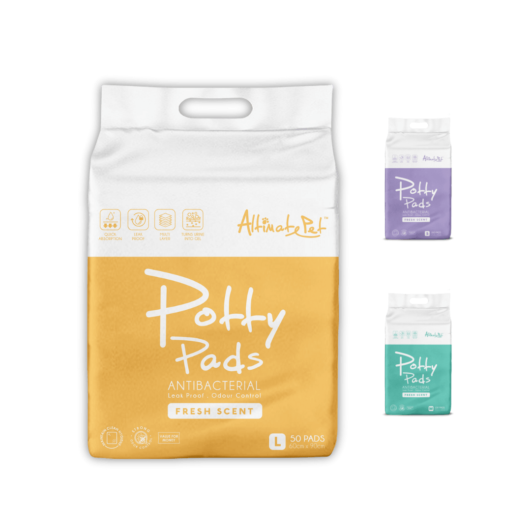 Altimate Pet Potty Pads are 100% leakproof, highly absorbent pads infused with fresh scent for enhanced odor control. Made with Leak Proof Multilayer technology, these heavy duty pads are built to withstand overflow. The fast-drying top layer also prevents tracking, so you don’t have to worry about your pup stepping into his mess. Whether you are using them for puppy training or to assist aging dogs, these pads are a great way to keep your floors clean and provide your furry friend with relief.