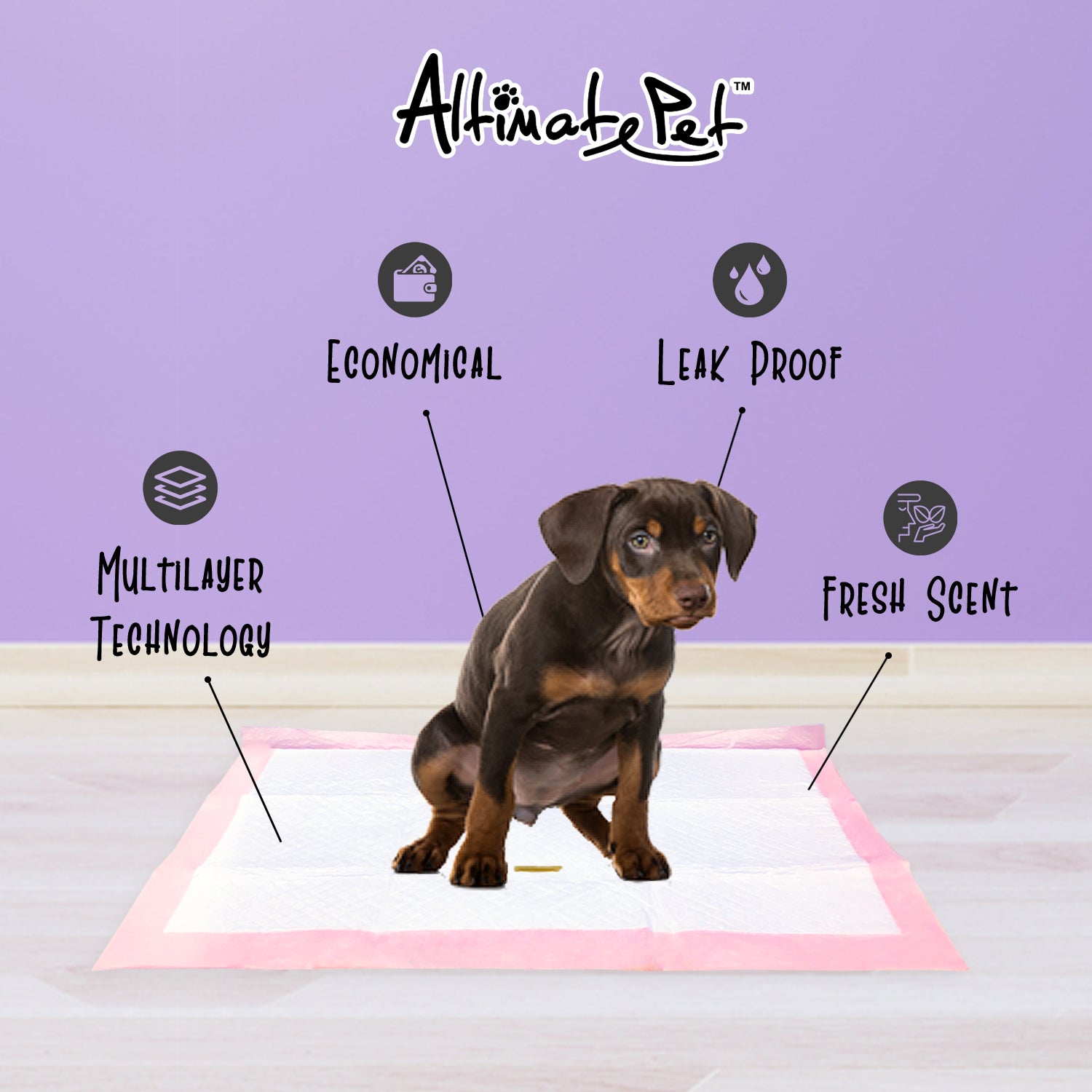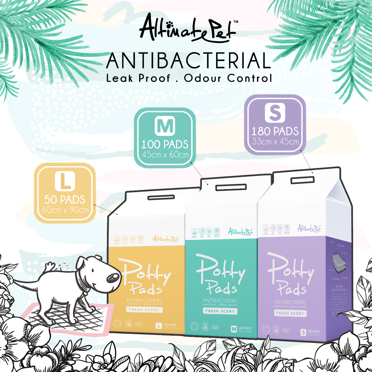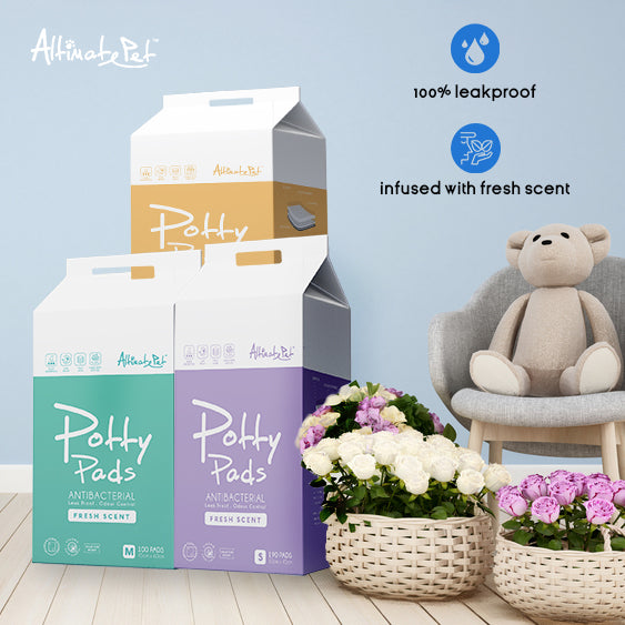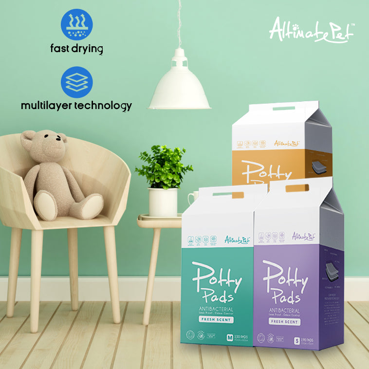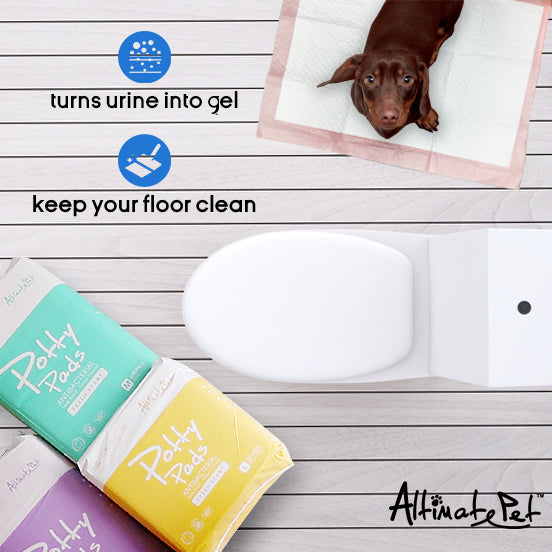 Altimate Pet Potty Pads are 100% leakproof, highly absorbent pads infused with fresh scent for enhanced odor control. Made with Leak Proof Multilayer technology, these heavy duty pads are built to withstand overflow. The fast-drying top layer also prevents tracking, so you don’t have to worry about your pup stepping into his mess. Whether you are using them for puppy training or to assist aging dogs, these pads are a great way to keep your floors clean and provide your furry friend with relief.
