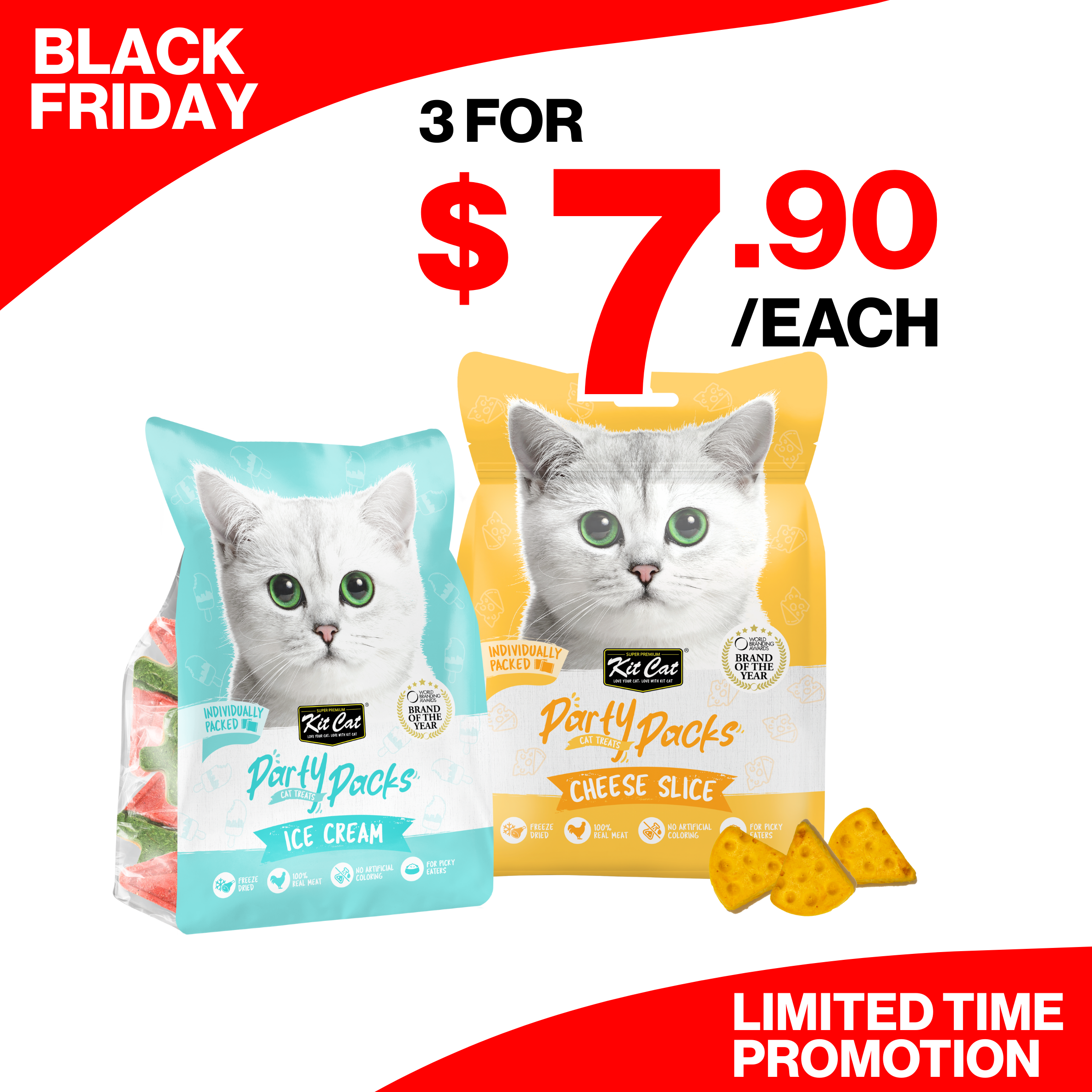 Kit Cat Party Packs Freeze Dried Treats for Cats (7 Types)
