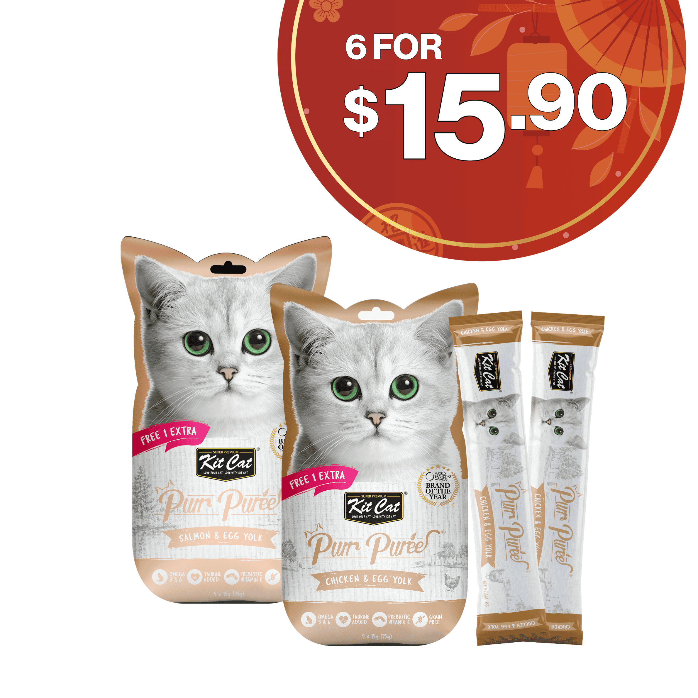 Kit Cat Purr Puree cat treats are created by nutritionists who are cat lovers and are made with goodness of carefully selected natural ingredients. This recipe contains a smooth blend of chicken or tuna. with no added colours or preservatives and is perfect for cats of all life stages. Grain-Free, delicious and 100% Natural – this will be the most irresistible and ideal treat your cat will crave.