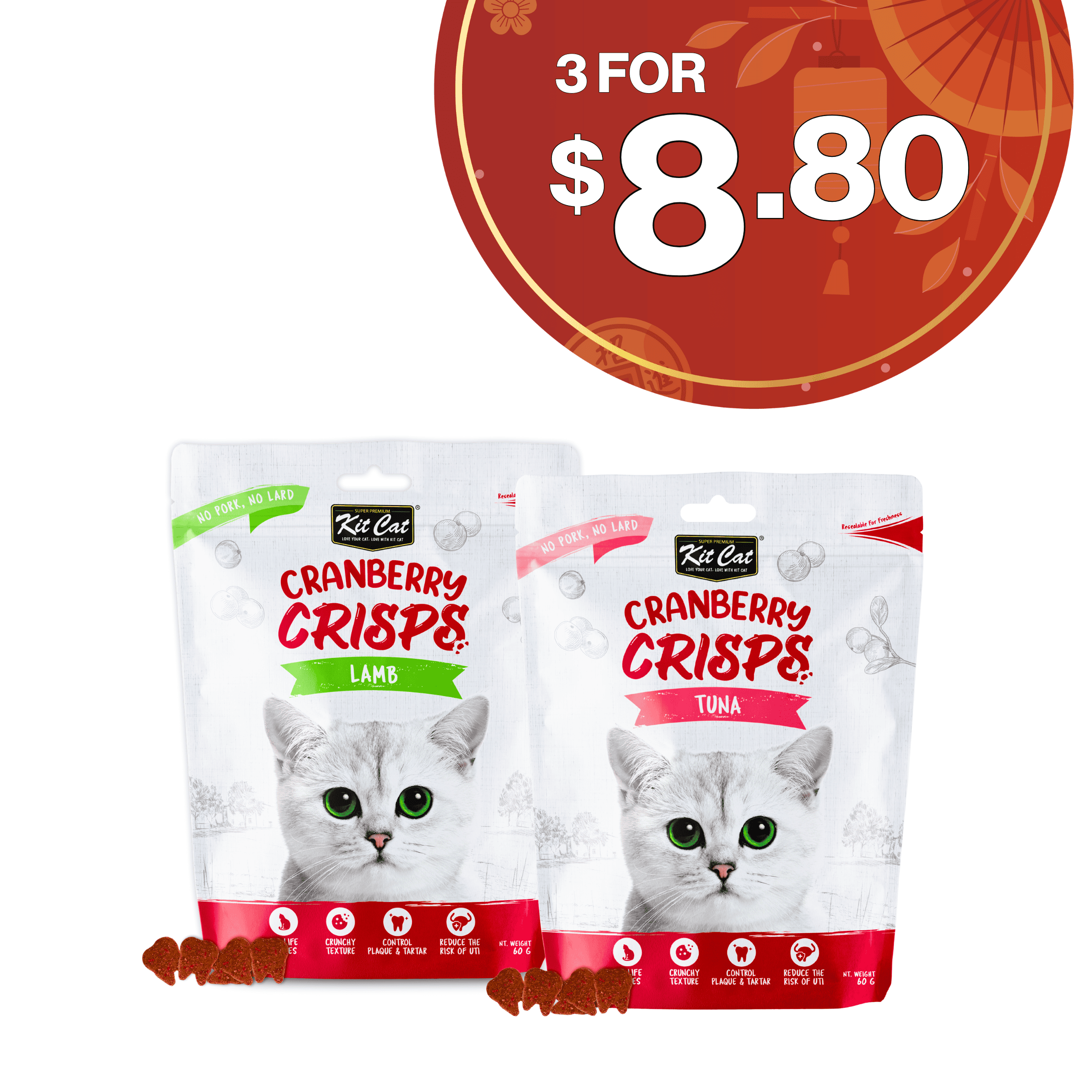{"id":7721215688752,"title":"[12.12] Kit Cat 蔓越莓薯片猫粮 (20g) ","handle":"kit-cat-cranberry-crisps-cat-treat-60g-1","description":"\u003cdiv\u003e\n\u003ctable width=\"100%\" data-mce-fragment=\"1\" data-mce-selected=\"1\"\u003e\u003ctbody data-mce-fragment=\"1\"\u003e\u003ctr data-mce-fragment=\"1\"\u003e\n\u003ctd style=\"text-align: center; width: 51.2804%;\" data-mce-fragment=\"1\" data-mce-selected=\"1\"\u003e \u003cspan style=\"color: #ff2a00;\"\u003e\u003cstrong\u003e\u003cspan style=\"text-decoration: underline;\"\u003e1 件 1.00 美元\u003c\/span\u003e\u003c\/strong\u003e\u003c\/span\u003e\n\u003c\/td\u003e\n\u003ctd style=\"text-align: center; width: 44.7196%;\" data-mce-fragment=\"1\" data-mce-selected=\"1\"\u003e \u003cspan style=\"color: #ff2a00;\"\u003e\u003cstrong\u003e\u003ca href=\"https:\/\/www.b2kpet.com.sg\/products\/12-12-ctn-of-30-kit-cat-grain-free-cat-stick-3-sticks-15g\" style=\"color: #ff2a00;\" data-mce-fragment=\"1\" data-mce-href=\"https:\/\/www.b2kpet.com.sg\/products\/12-12-ctn-of-30-kit-cat-grain-free-cat-stick-3-sticks-15g\"\u003e1 箱(50 件)只需 44 美元\u003c\/a\u003e\u003c\/strong\u003e\u003c\/span\u003e\n\u003c\/td\u003e\n\u003c\/tr\u003e\u003c\/tbody\u003e\u003c\/table\u003e\n\u003cbr\u003e\u003cimg src=\"https:\/\/cdn.shopify.com\/s\/files\/1\/0569\/1991\/6592\/files\/LANDING-PG_-CRANBERRY-CRISPS.jpg?v=1670389155\" alt=\"\" style=\"display: block; margin-left: auto; margin-right: auto;\" data-mce-fragment=\"1\" data-mce-src=\"https:\/\/cdn.shopify.com\/s\/files\/1\/0569\/1991\/6592\/files\/LANDING-PG_-CRANBERRY-CRISPS.jpg?v=1670389155\"\u003e\n\u003c\/div\u003e","published_at":"2025-12-02T09:08:32+08:00","created_at":"2025-08-19T17:16:18+08:00","vendor":"Kit Cat","type":"Cat Treat","tags":["cat","cat treat","crunchy cat treat","dental cat treat","Normal","today deal","vajro"],"price":330,"price_min":330,"price_max":330,"available":true,"price_varies":false,"compare_at_price":350,"compare_at_price_min":350,"compare_at_price_max":350,"compare_at_price_varies":false,"variants":[{"id":42261223800880,"title":"Tuna","option1":"Tuna","option2":null,"option3":null,"sku":"KC-7170","requires_shipping":true,"taxable":false,"featured_image":{"id":34769945133104,"product_id":7721215688752,"position":3,"created_at":"2025-01-08T09:47:16+08:00","updated_at":"2026-01-06T16:55:07+08:00","alt":"Kit Cat Cranberry Crisps Cat Treat - Tuna (60g).","width":1024,"height":1024,"src":"\/\/www.b2kpet.com\/cdn\/shop\/files\/tuna_5e303018-88e8-47c8-aef7-336f454ed2aa.png?v=1767689707","variant_ids":[42261223800880]},"available":false,"name":"[12.12] Kit Cat 蔓越莓薯片猫粮 (20g) - Tuna","public_title":"Tuna","options":["Tuna"],"price":330,"weight":80,"compare_at_price":350,"inventory_management":"shopify","barcode":"664533287170","featured_media":{"alt":"Kit Cat Cranberry Crisps Cat Treat - Tuna (60g).","id":27099690467376,"position":3,"preview_image":{"aspect_ratio":1.0,"height":1024,"width":1024,"src":"\/\/www.b2kpet.com\/cdn\/shop\/files\/tuna_5e303018-88e8-47c8-aef7-336f454ed2aa.png?v=1767689707"}},"requires_selling_plan":false,"selling_plan_allocations":[]},{"id":42261223833648,"title":"Salmon","option1":"Salmon","option2":null,"option3":null,"sku":"KC-7156","requires_shipping":true,"taxable":false,"featured_image":{"id":34769939071024,"product_id":7721215688752,"position":4,"created_at":"2025-01-08T09:47:16+08:00","updated_at":"2026-01-06T16:55:07+08:00","alt":"Kit Cat Cranberry Crisps Cat Treat - Salmon (60g).","width":1024,"height":1024,"src":"\/\/www.b2kpet.com\/cdn\/shop\/files\/salmon_6.png?v=1767689707","variant_ids":[42261223833648]},"available":true,"name":"[12.12] Kit Cat 蔓越莓薯片猫粮 (20g) - Salmon","public_title":"Salmon","options":["Salmon"],"price":330,"weight":80,"compare_at_price":350,"inventory_management":"shopify","barcode":"664533287156","featured_media":{"alt":"Kit Cat Cranberry Crisps Cat Treat - Salmon (60g).","id":27099690434608,"position":4,"preview_image":{"aspect_ratio":1.0,"height":1024,"width":1024,"src":"\/\/www.b2kpet.com\/cdn\/shop\/files\/salmon_6.png?v=1767689707"}},"requires_selling_plan":false,"selling_plan_allocations":[]},{"id":42261223866416,"title":"Chicken","option1":"Chicken","option2":null,"option3":null,"sku":"KC-7125","requires_shipping":true,"taxable":false,"featured_image":{"id":34769938546736,"product_id":7721215688752,"position":5,"created_at":"2025-01-08T09:47:16+08:00","updated_at":"2026-01-06T16:55:07+08:00","alt":"Kit Cat Cranberry Crisps Cat Treat - Chicken (60g).","width":1024,"height":1024,"src":"\/\/www.b2kpet.com\/cdn\/shop\/files\/chicken_2.png?v=1767689707","variant_ids":[42261223866416]},"available":true,"name":"[12.12] Kit Cat 蔓越莓薯片猫粮 (20g) - Chicken","public_title":"Chicken","options":["Chicken"],"price":330,"weight":80,"compare_at_price":350,"inventory_management":"shopify","barcode":"664533287125","featured_media":{"alt":"Kit Cat Cranberry Crisps Cat Treat - Chicken (60g).","id":27099690532912,"position":5,"preview_image":{"aspect_ratio":1.0,"height":1024,"width":1024,"src":"\/\/www.b2kpet.com\/cdn\/shop\/files\/chicken_2.png?v=1767689707"}},"requires_selling_plan":false,"selling_plan_allocations":[]},{"id":42261223899184,"title":"Beef","option1":"Beef","option2":null,"option3":null,"sku":"KC-7149","requires_shipping":true,"taxable":false,"featured_image":{"id":34769937727536,"product_id":7721215688752,"position":6,"created_at":"2025-01-08T09:47:28+08:00","updated_at":"2026-01-06T16:55:07+08:00","alt":"Kit Cat Cranberry Crisps Cat Treat - Beef (60g).","width":1024,"height":1024,"src":"\/\/www.b2kpet.com\/cdn\/shop\/files\/beef_6_81bddc61-1933-4c5f-b0f0-557a1ebb6d01.png?v=1767689707","variant_ids":[42261223899184]},"available":true,"name":"[12.12] Kit Cat 蔓越莓薯片猫粮 (20g) - Beef","public_title":"Beef","options":["Beef"],"price":330,"weight":80,"compare_at_price":350,"inventory_management":"shopify","barcode":"664533287149","featured_media":{"alt":"Kit Cat C
