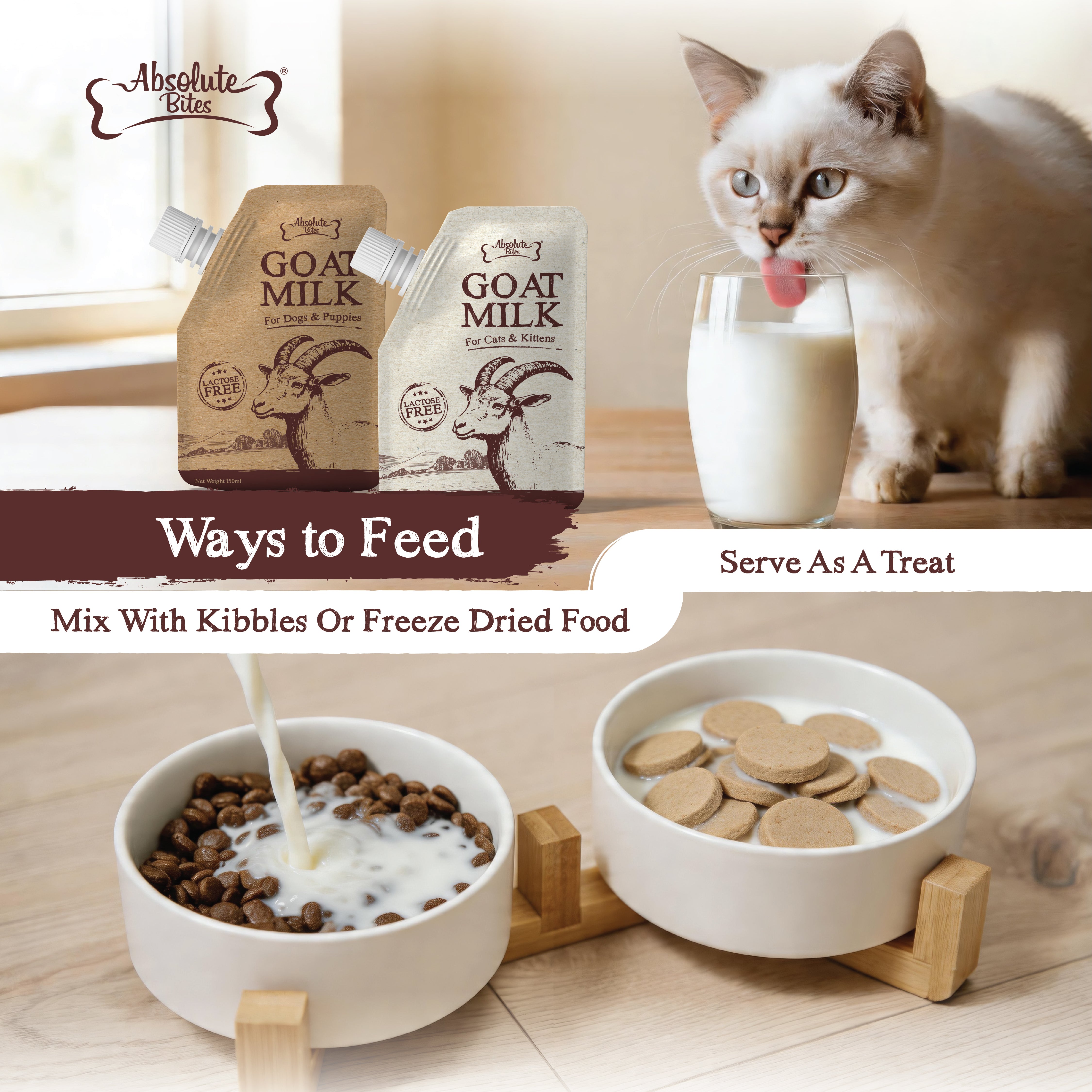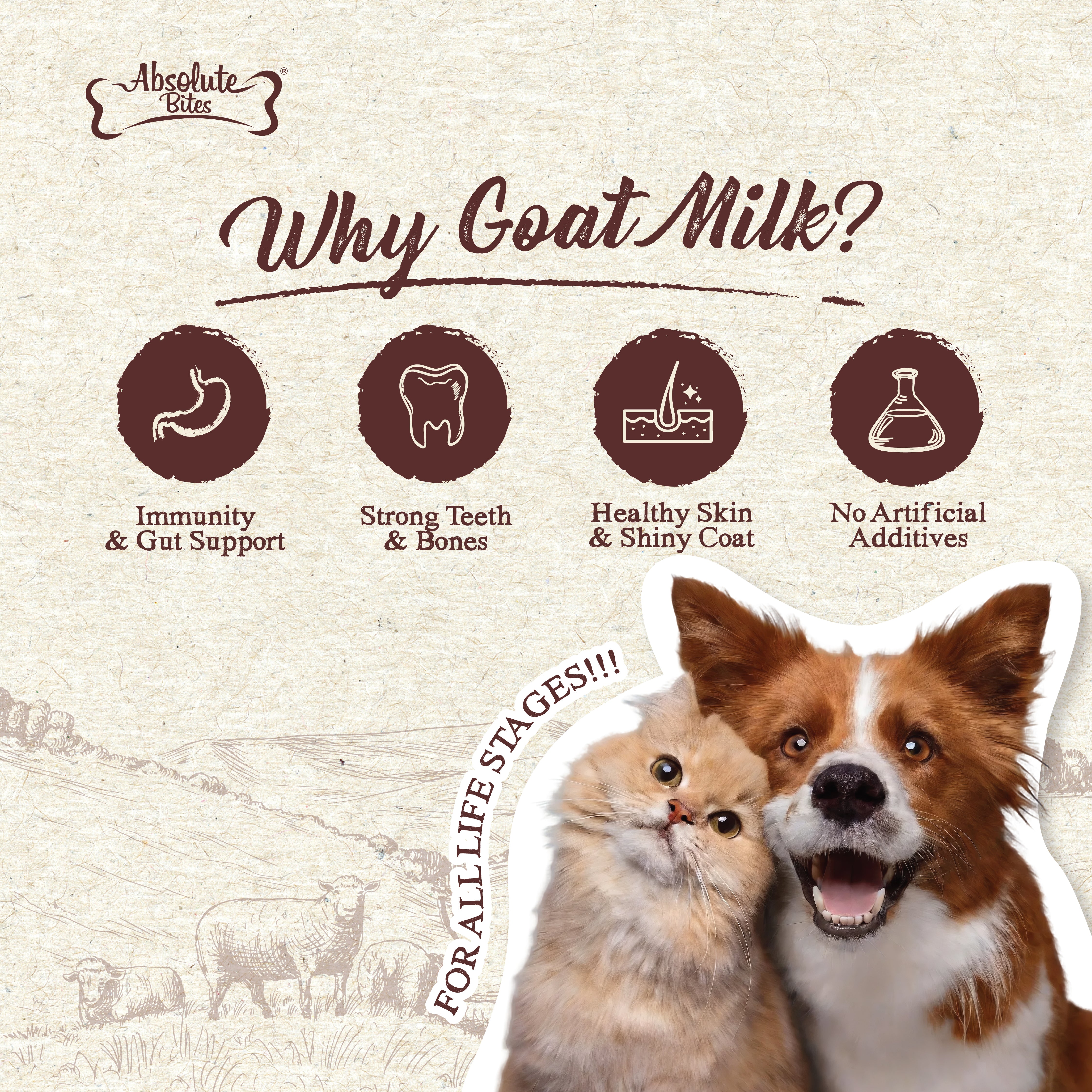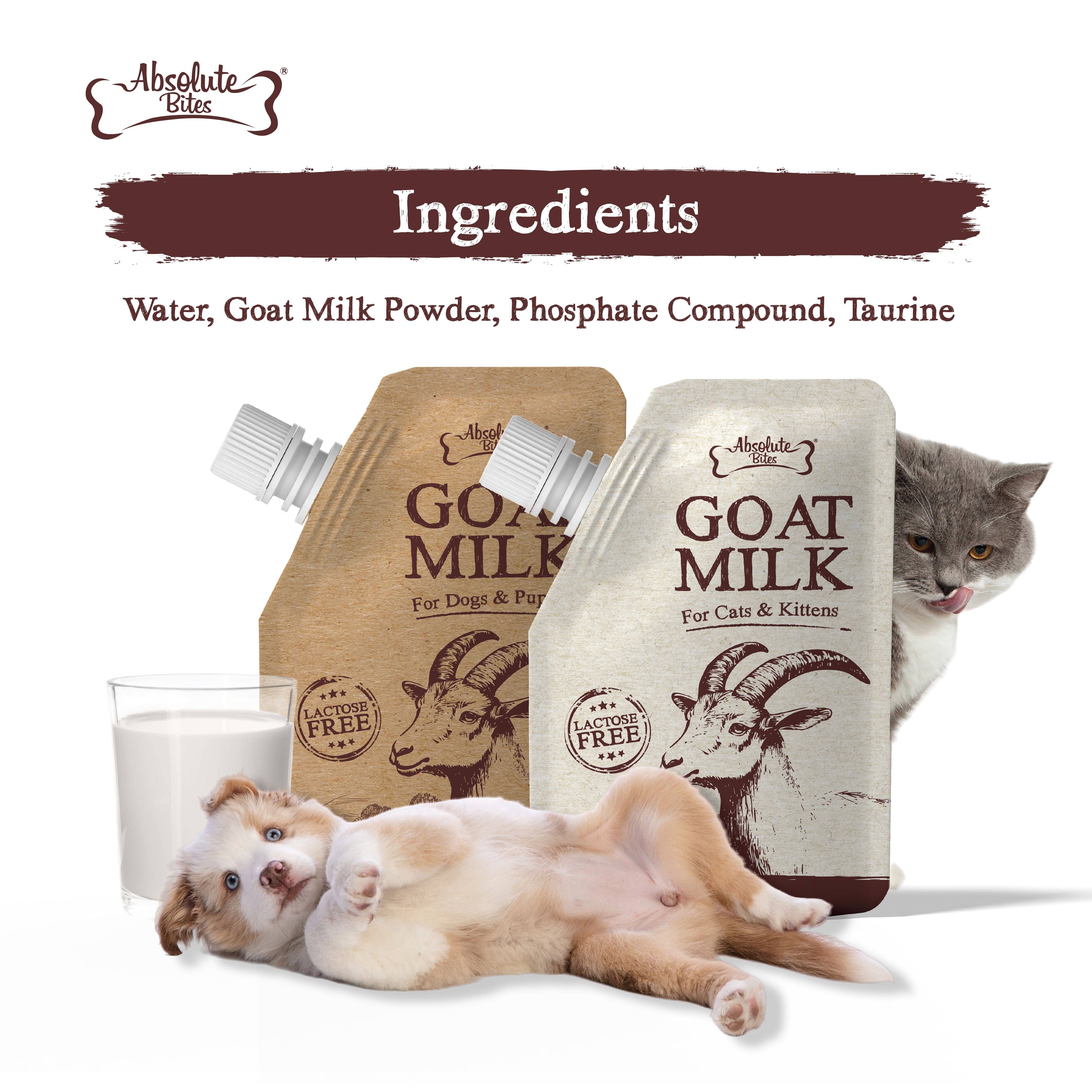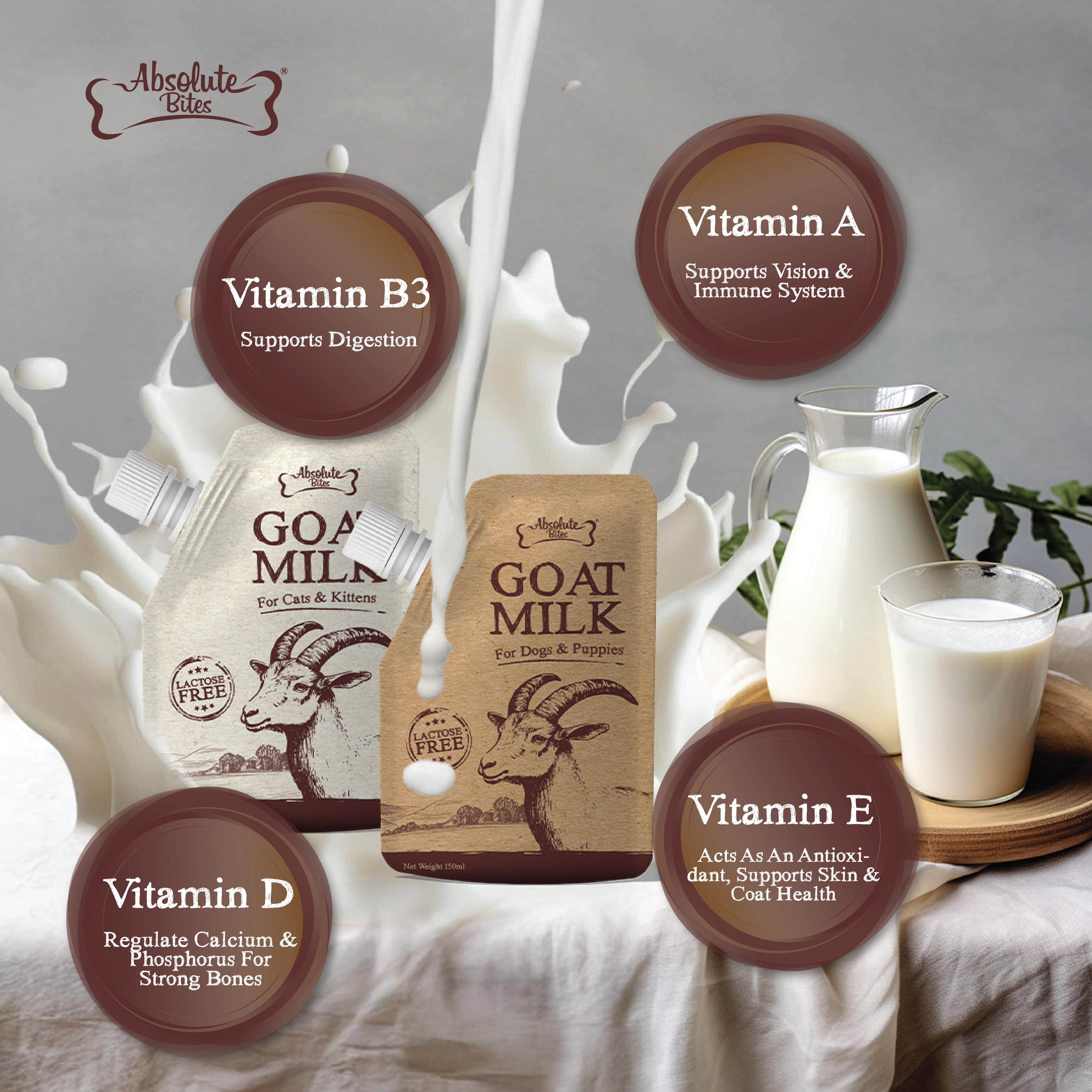 Give your furry friend the nourishment they deserve with Absolute Bites® Goat Milk, a nutrient-rich, lactose-free milk specially formulated for dogs of all life stages. Made with premium goat milk, this supplement is gentle on sensitive stomachs and packed with natural goodness to support immunity, digestion, skin, and coat health.